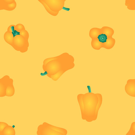 Yellow paprika pepper seamless pattern. Vector decorative design for backdrops, wrapping paper, fabric textile prints.