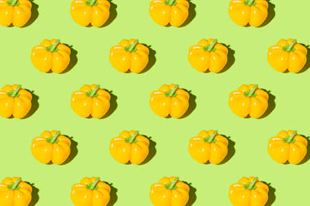 Creative pattern made of yellow bell pepper on green pastel background with shadows. minimal style. Healthy food ingredient concept
