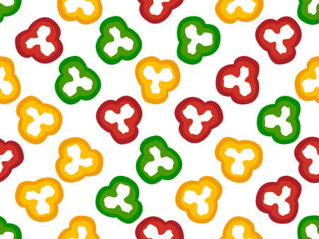 Pepper slices seamless pattern. Bell pepper rings on a white background. Design with bell pepper in flat style for fabric printing, banners and posters. vector illustration