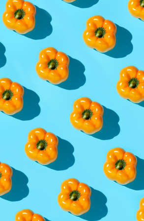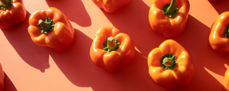 Orange bell peppers pattern with shadows on orange background, vibrant vegetables and modern design concept