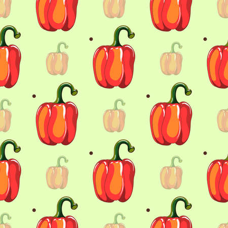 Yellow and red bell peppers seamless pattern. Vector illustration in flat style. Vegetable print. Useful products