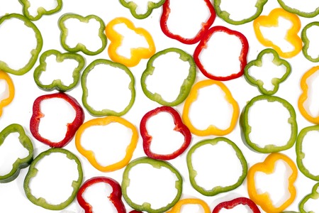 colorful sliced bell peppers isolated on a white background.