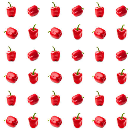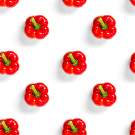 Bulgarian red pepper on white background, seamless pattern, wallpaper, top view, flat layout, isolated, template