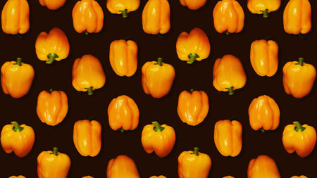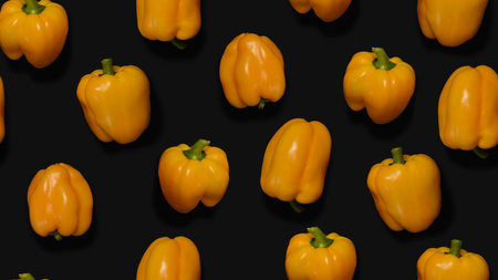 Repeating pattern of sweet yellow peppers with dark background. Seamless grocery pattern.