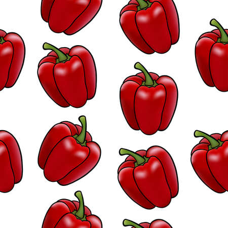 Vector illustration of a vegetable bell pepper in the style of realism red color seamless pattern on a white isolated background. Vector illustration