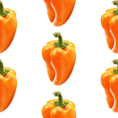 Illustration realism seamless pattern vegetable paprika orange color on a white isolated background. Sweet bell pepper. High quality illustration
