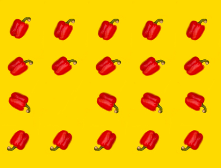 Pattern. Texture from red bell peppers. On a yellow background. Raw vegetable.