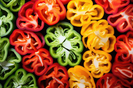 Mixed sliced multi colored sweet bell pepper background