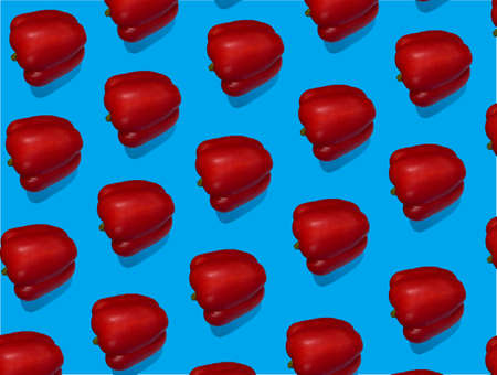 seamless pattern of bulgarian red pepper on blue background. paprika wallpaper, sweet pepper print pattern, top view, flat layout, isolated.