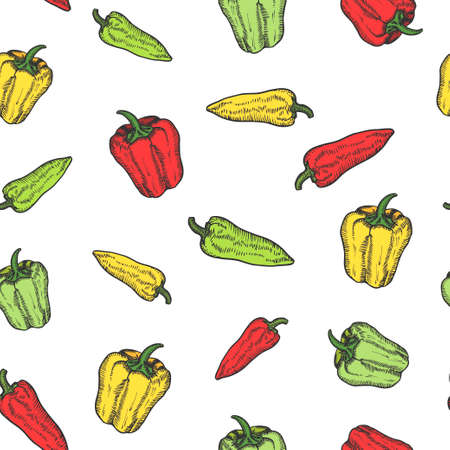 Pepper hand drawn background seamless pattern. Vintage background. Vector