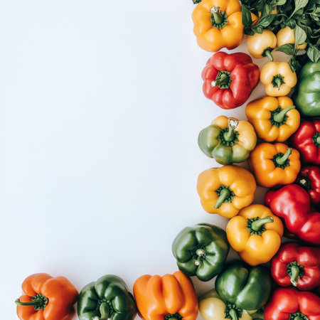 Leafy greens and vibrant bell peppers laid out with copy space for your message
