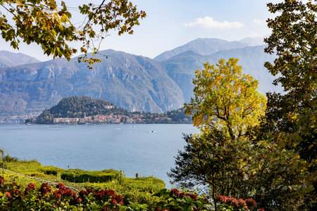 bellagio on lake como seen from gardens at tremezzo across the lake