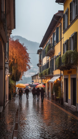 Varenna, Italy - October 27, 2017: Morning in Varenna. Small Town on Lake Como, Italy.