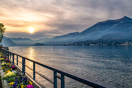 Great sunset in Bellagio Lake. Lombardy, Italy.