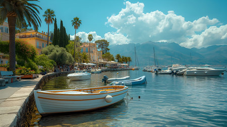 Azure Oasis: Palm-Lined Promenades Meet Vibrant Markets on the French Riviera. AI-generated