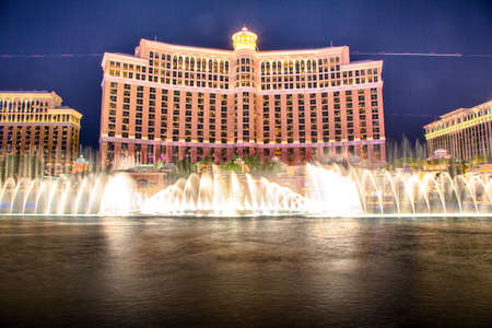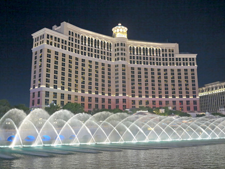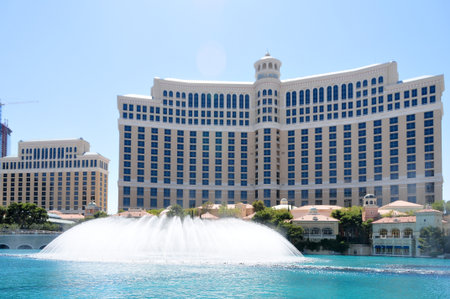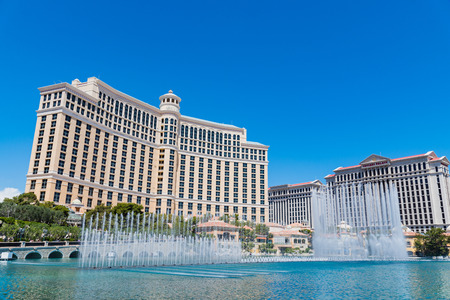 LAS VEGAS - JULY 03 : Bellagio hotel and the dancing fountains in Las Vegas on July 03 2014. Bellagio is a luxury hotel and casino located on the Las Vegas Strip. The Bellagio opened on 1998.