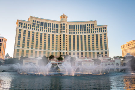 LAS VEGAS, USA - OCTOBER 3: Fountain show in front of Bellagio hotel and casino on October 3, 2019 in Las Vegas, USA. Las Vegas is one of the top tourist destinations in the world.