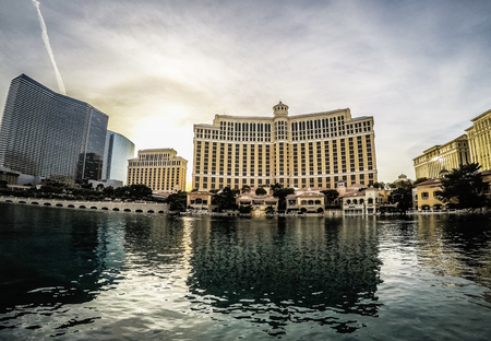 November 2017 Las Vegas NV - hotels and restaurants on las vegas strip around Bellagio fountains