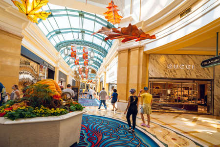 Las Vegas, Nevada, USA - October 1, 2021 Las Vegas Bellagio Hotel interior. Shops, decor, walking people