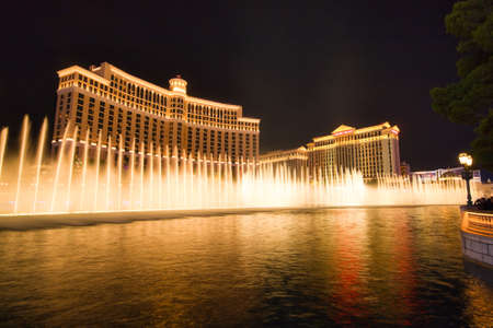 Las Vegas, June 15, 2012: Las Vegas Bellagio Hotel Casino, featured with its world famous fountain show, at night with fountains in Las Vegas, Nevada.