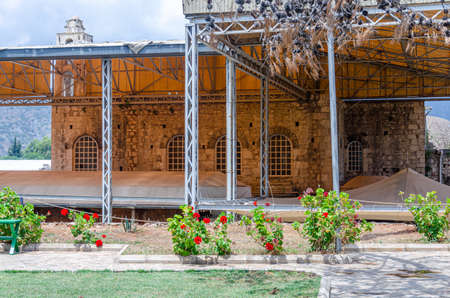 Reconstruction and restoration of facade of the Ancient Byzantine Church of St. Nicholas, original Santa Claus. Old Greek antique temple of Saint Nicholas in Demre, Antalya province, southern Turkey