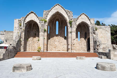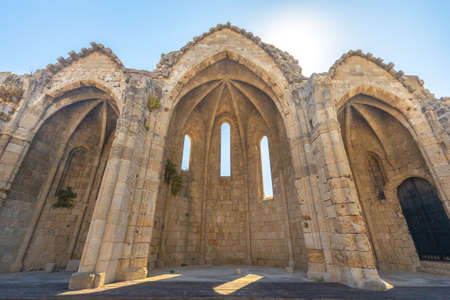 Rhodes, Greece: Ruins of the medieval 14th-century Church of the Virgin of the Burgh, on the Aegean island of Rhodes.