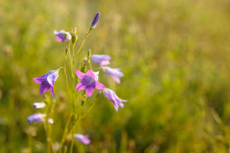 Beautiful blooming wild bluebells or bellflower flowers during sunny summer morning