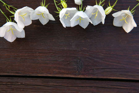 White and purple bell flower. Beautiful spring background with campanula bouquet.