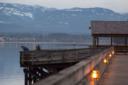 Comox harbour walkway at dusk, Vancouver Island, BC, Canada