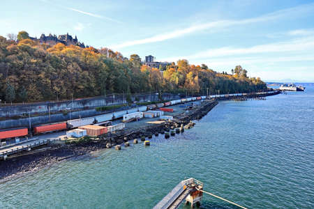 Various panoramic views of the city and the coastline in the daytime and evening. Tacoma City, USA. October, 2019