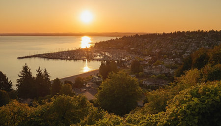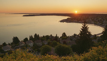 The sun sets over the Puget Sound in the Pacific Northwest.