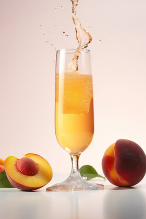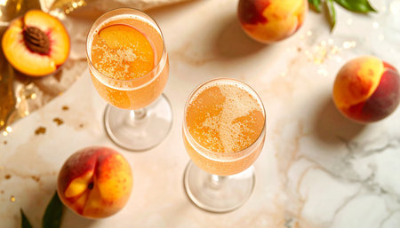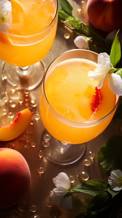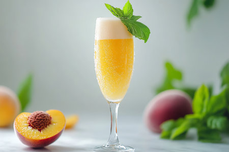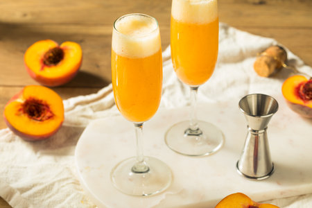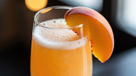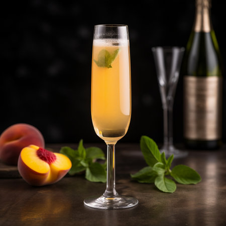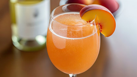 Elegant and Refreshing Peach Bellini Cocktail with Sparkling Wine and Fresh Peach Garnish