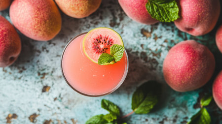 Two vibrant summer drinks with floating mint and peach. generative ai