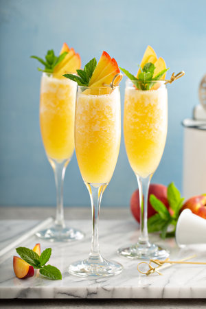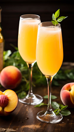 Sweet Bubbly Peach Bellini Mimosa with Champagne