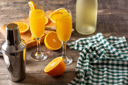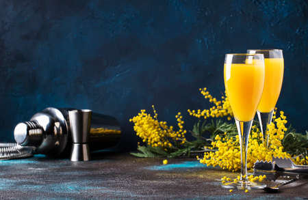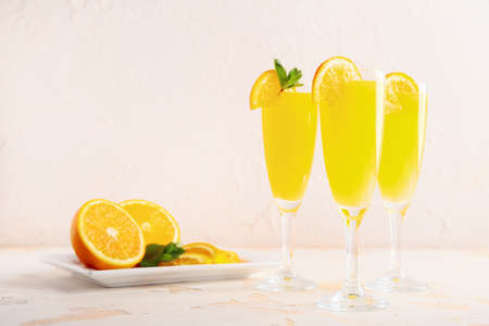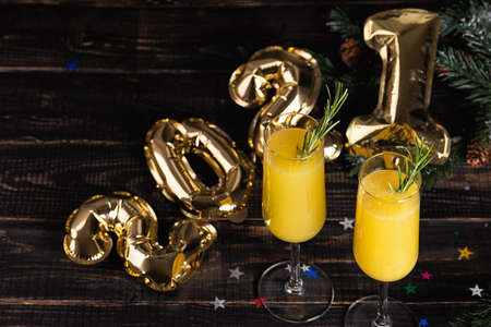 Mimosa coctail with orange juce and champagne. New Year 2021
