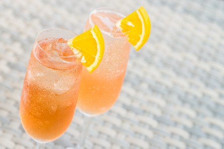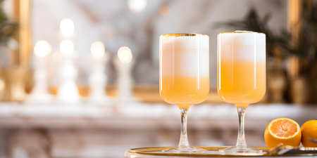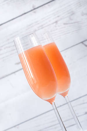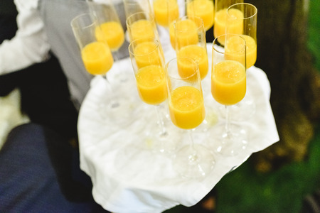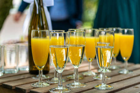 sparkling wine in glasses with orange juice in restaurant or on a party dinner setting