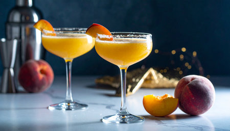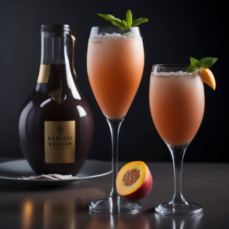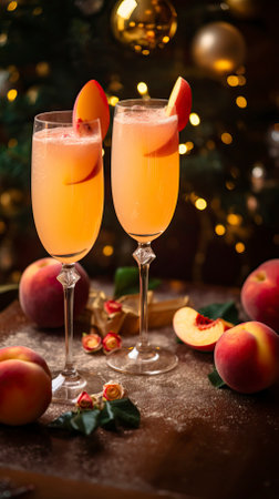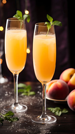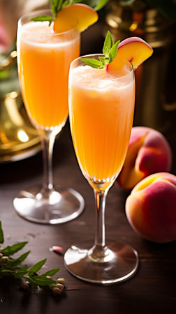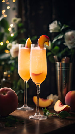 Peach Bellini drinks on a Table with Beautiful Lighting