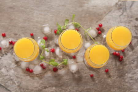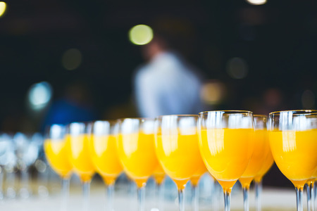 Fresh orange juice. Restaurant. Catering drinks. Selective focus with bokeh background.