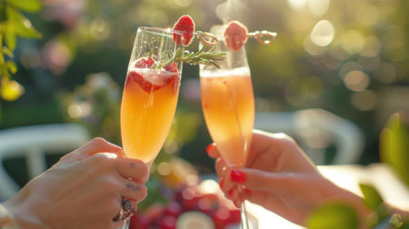 Two people toasting each other with elegant glasses filled with fruity mocktails
