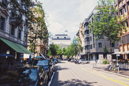 ZURICH SWITZERLAND MAY 14 2015: Inner City of Zurich Switzerland. Old Town Avenue
