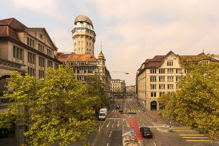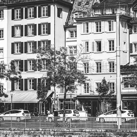 ZURICH, SWITZERLAND - October 20, 2018: A view of architecture in the historic center of Zurich city.