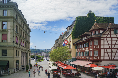 Lucerne, Switzerland - June 27, 2016: Street view with ancient half-timbered house in Lucerne city in Switzerland