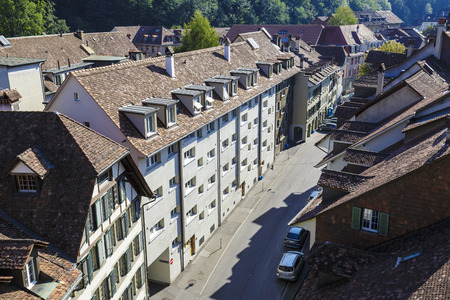 BERN, SWITZERLAND - SEPTEMBER 13, 2015: Aerial view of the townhouses of the city. Bern with a population of approx. 140000 citizens it is the fourth most populous city in Switzerland