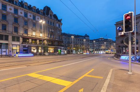 Zurich, Switzerland - 9 October, 2016: Bahnhoplatz square in the city of Zurich in the early motning. Zurich is the largest city in Switzerland and the capital of the Swiss canton of Zurich.