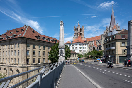 LAUSANNE, SWITZERLAND - JUNE 18, 2023: Panorama of old town of city of Lausanne, Canton of Vaud, Switzerland