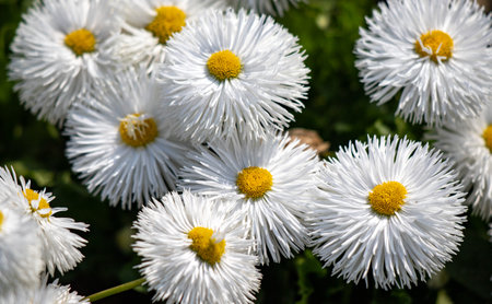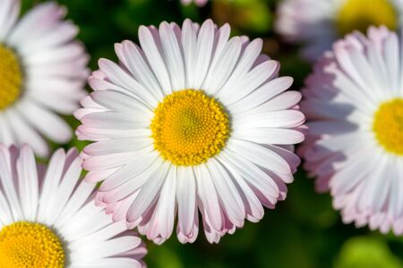 Spring and summer nature scene with blooming bellis perennis, commonly known as the white daisy