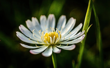 Tranquil scene of white daisies with a moody, vintage filter in a meadow at twilight