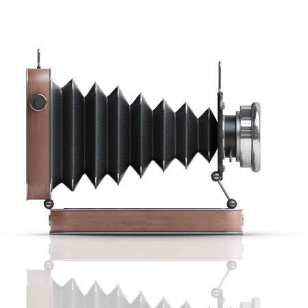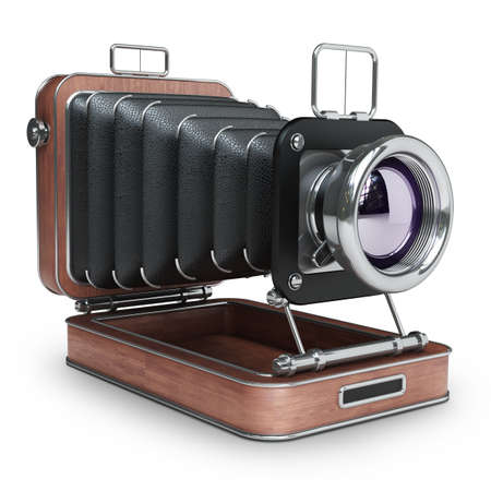 Classic Retro Camera in Wooden case isolated on white background High resolution 3d
