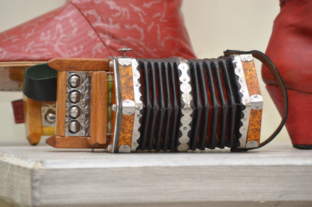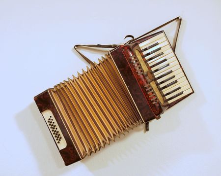 Fragments of musical instrument bayan close-up