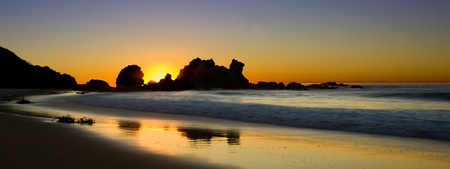 Beautiful sunset at the beach on the Atlantic Ocean in Portugal.